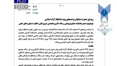 به گزارش پایگاه اطلاع رسانی دکتری تخصصی ایران (Ph.D info) به نقل از خبرگزاری مهر؛ دانشگاه آزاد اسلامی برنامه زمانبندی برگزاری جلسات…