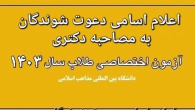 لیست نفرات دعوت شده به مصاحبه دکتری دانشگاه بین المللی مذاهب اسلامی